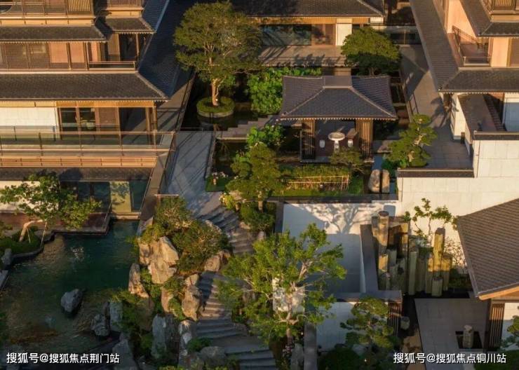 立体院居,功能臻配:叠墅与合院的奢享尺度建筑整体采用蓝眼睛石材、铝板、玻璃幕墙等材质,搭配香槟金和古典灰,为建筑增加高贵、庄重的气质。