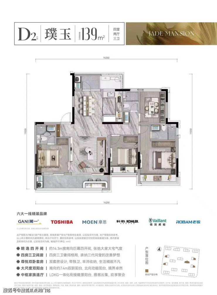建面约169方户型,位于整个小区C位,主卧奢华套房+浴缸,四房三卫,南北双阳台,独立入户电梯厅。
