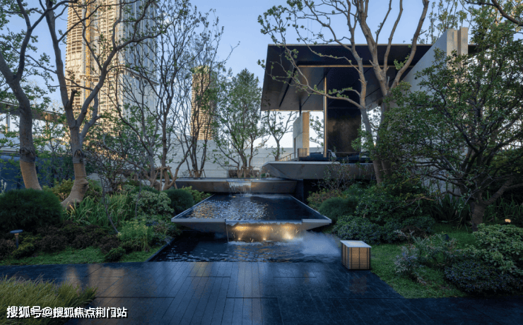 其中“点睛之笔”落在云崖悬厅,是以世界知名建筑“流水别墅”的美学为设计内核,8级落瀑从高处倾泻而下,水声潺潺间与下沉式景观相融。