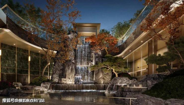 因为整体抬高,一步入大门,一练约7米高的悬瀑飞流直下,将外界喧嚣瞬间过滤——这些年,只见过高奢酒店炫技的电子瀑,与这般天然隐逸相比,高下立判。