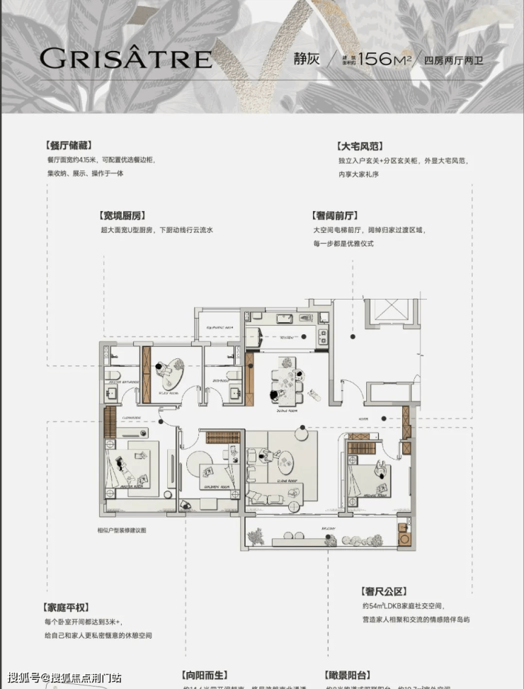 约156㎡户型,两梯两户,定位纯改善。双玄关设计,全家的包包、鞋子全部都能容纳,既兼容实用性还能避免一入户就一眼看穿客厅的尴尬,保证隐私。