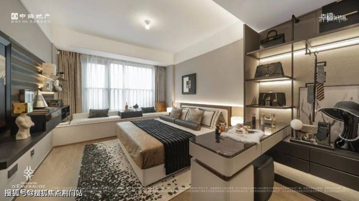 四开间朝南,南向面宽约14.6米,三个卧室都能够直面南向采光,实现阳光平权。主卧是豪华套房,除了飘窗、独卫、衣帽间外,临时办公也能在主卧空间内实现。