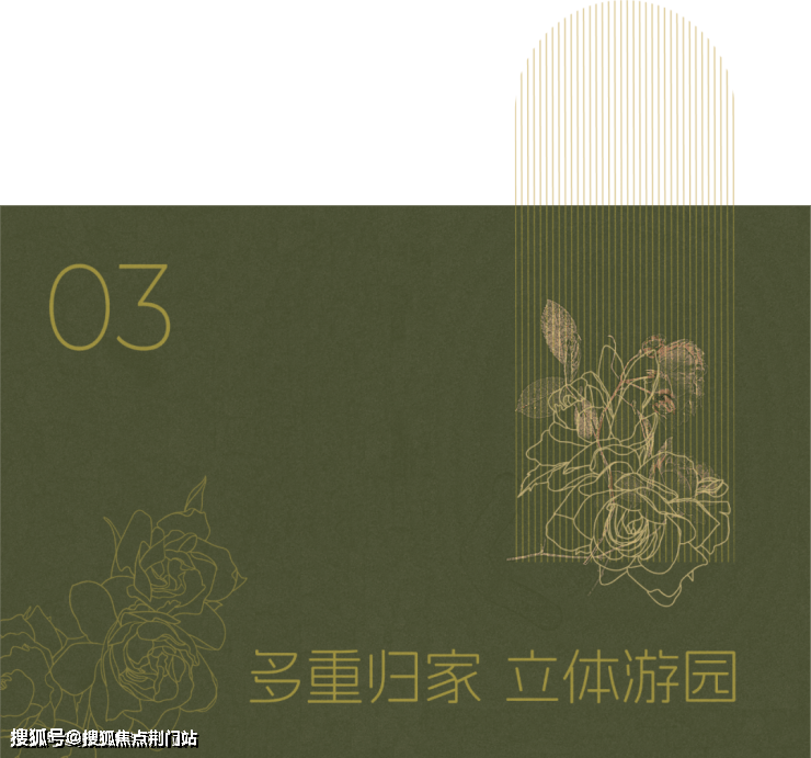 相对应的,丽香庭主入口遵循传统对称美学,采用现代工艺与材质营造奢华感;通过多重庭院,形成仪式感归家院落。同时,打破规整的水平空间布局,利用地势高差对空间进行重组、叠合,形成自由灵动的立体庭院;让人们在曲径通幽的游园路径中回归自然,抵达精神心乡。