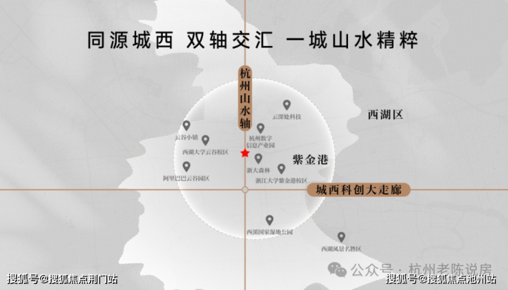 【保利置业·西源赋】是西湖、西溪以北绕城内与蒋村地王并存的唯二新盘。正处城西大走廊的起始点紫金港板块,东南约1.5km即为浙大紫金港校区,直线距离建设中的地铁4号线莲池站仅约660m。