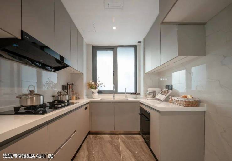建面约310㎡的边套,首层南向横厅面宽就达到了约6.9米,厨房面宽约5.5米,可以阔绰地分出中西厨;