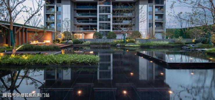 从园区入口到园区景观、建筑外立面、架空层、单元入户,再到样板房...几乎就是一场360度呈现的产品力「环幕大片」。因为南临一线东沙湖拥有得天独厚的水系自然资源,项目景观借鉴曼谷四季酒店设计灵感,在社区人行入口、中央景观、核心节点区域铺陈多处水景,将整个小区打造成一座“微缩的东沙湖”。