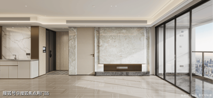 △ 宸云电梯厅(上)及室内玄关效果图(过程稿,非最终交付标准)