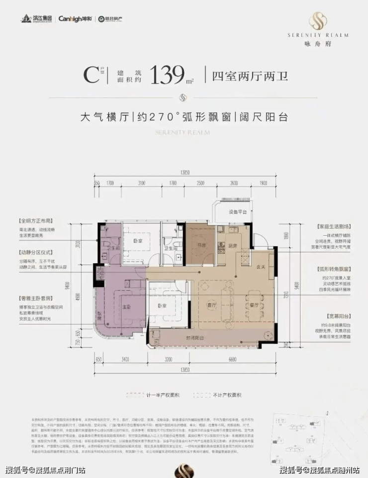核心标签:南向四开间+阳光双套房+270°弧形飘窗