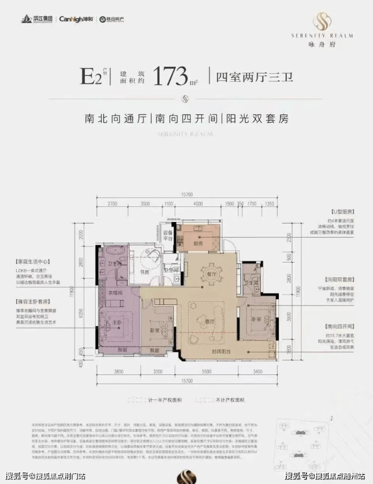 采光拉满:南向四开间超15.7米,双套房均带飘窗,阳光“追着人走”;