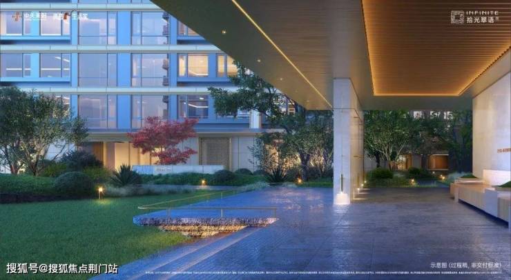 “一轴四境”的景观格局,将大堂、水院、花园、草坪等一一串联,绿洲与水系相伴,归家之路如桃源之境。 板块第一个半封闭式架空层, 兼容瑜伽、 健身、 亲子、 阅读等功能,