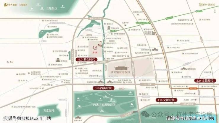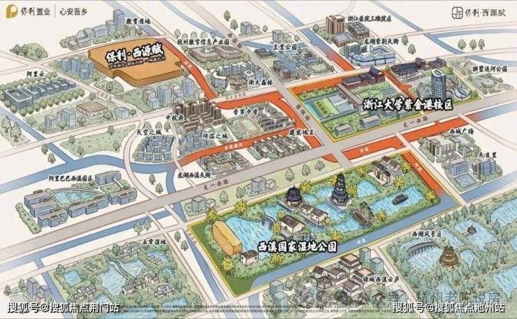 【保利置业·西源赋】是西湖、西溪以北绕城内与蒋村地王并存的唯二新盘。正处城西大走廊的起始点紫金港板块,东南约1.5km即为浙大紫金港校区,直线距离建设中的地铁4号线莲池站仅约660m。