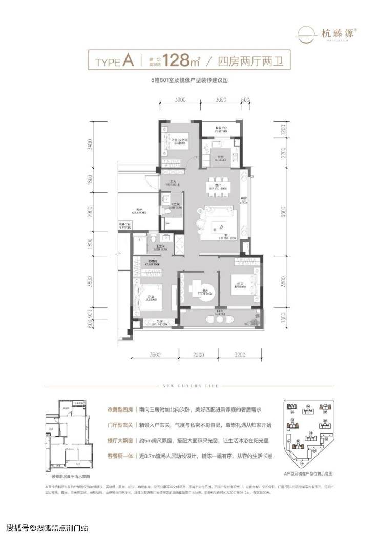 (建面约128方户型图示意)