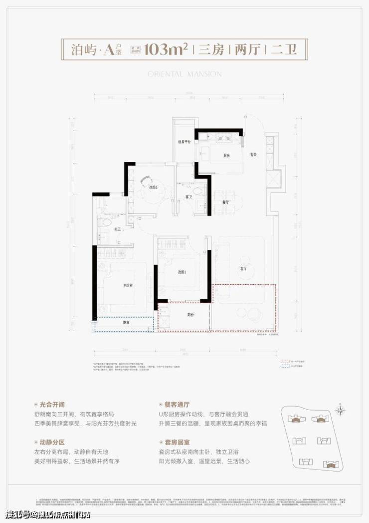 得房率的提升,户型自然就有了巨大的发挥空间。比如103㎡的三房,三开间朝南,巧妙地用S墙和创新的玻璃厨房,让空间的观感大大提升。