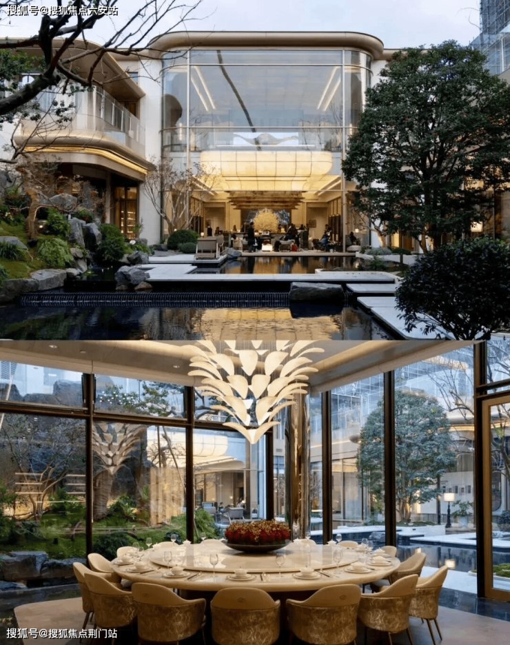 项目的核心亮点在于其“向下探索”的哲学。一个精心打造的下沉式庭院,以镜面水景和数棵百年珍稀古树为核心,成为静谧的社区绿洲与精神场所。这一设计巧妙地为约3200平方米的沉浸式地下会所引入了自然光与景观。下沉会所与酒店会所形成双会所格局,涵盖恒温泳池、私宴厅、健身房等全功能空间,宛如业主共享的“第二客厅”。社区内如同时尚展厅,甄选20种珍稀石材,从入口到室内细节,处处彰显材质之美。