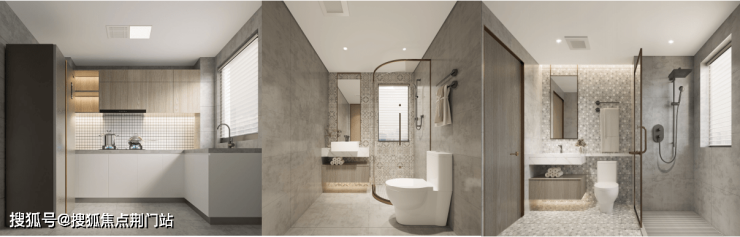 卫生间:灰白高级色调,科勒(台盆、水龙头、马桶、淋浴花洒)、奥普暖风机、摩恩(衣钩、毛巾环)等