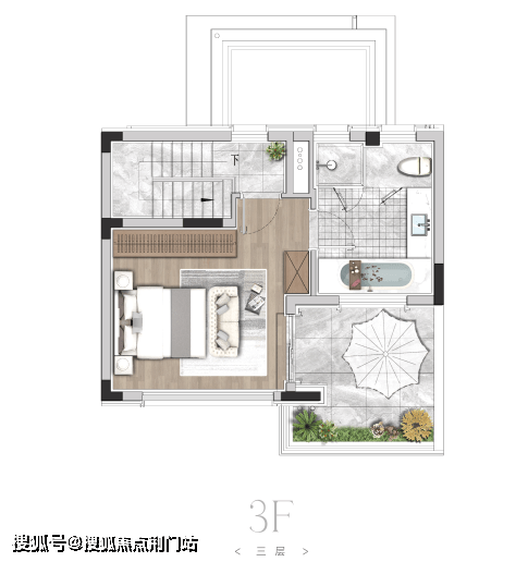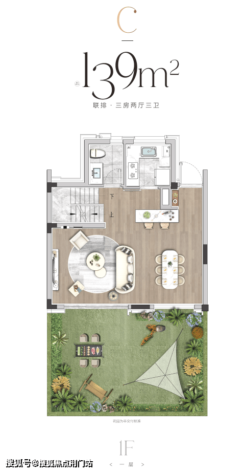 3)多功能巷道:洋房区花园空间及休闲平台、联排区南北双庭院