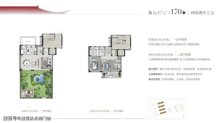 首层餐厅、客厅、品茶厅三个空间横向舒展,有机组合、互不干扰,单层就撑起了大平层的排场;自带一个南向宽约9.7米的超大花园,还镶嵌茶室空间、水池,满足各种生活意趣。
