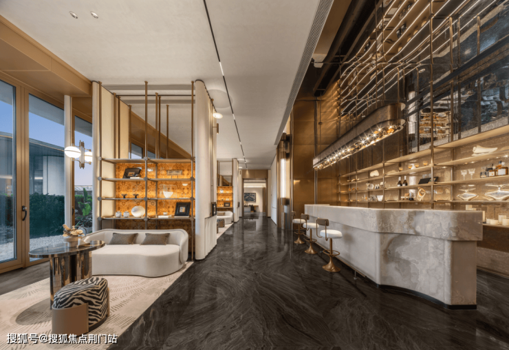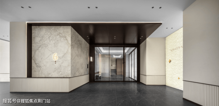 宸岸新月的大门,是引入眼帘的第一印象。约52米宽超横屏大门,白金色归家门厅,像一副打开的书香画卷。同时在门头两侧设置入口景墙、种植灌木池与姿态优雅的油橄榄树;地面铺装芝麻黑花岗岩与福鼎黑花岗岩,结合酒店式设计的归家动线,直接把归家仪式感拉满。