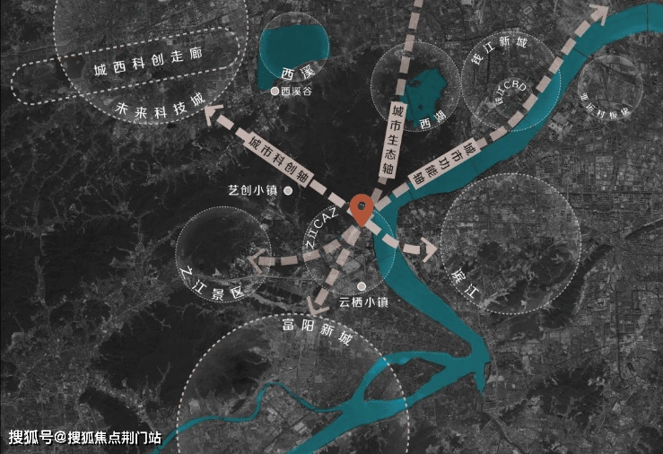 东钱塘江;南之江板块金融,行政,文化中心;西宋城,银泰百货之江店;北五云山,九溪玫瑰园。