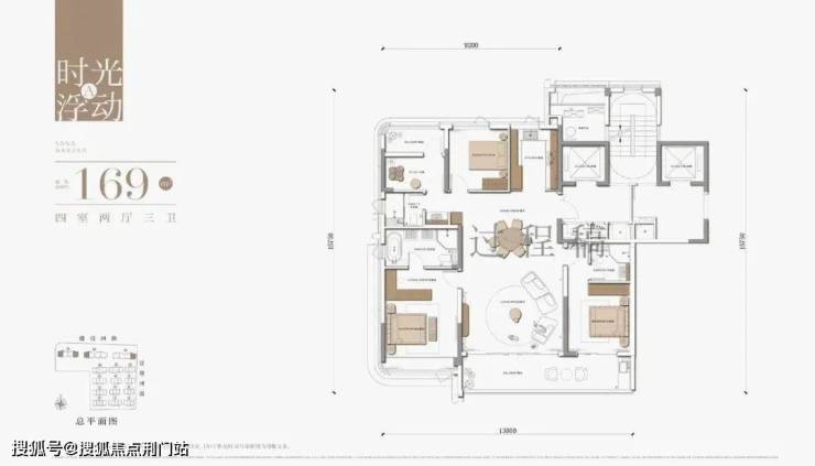 高层169㎡户型设置转角飘窗,观景面达7.2米,可俯瞰中央水景与联排区景观。