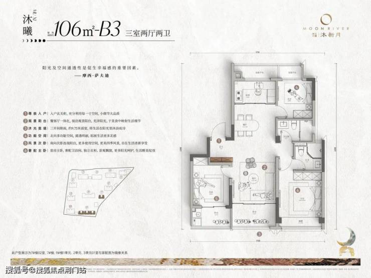 所以你看,沐新月的106方是三开间朝南格局,正气三房排布。