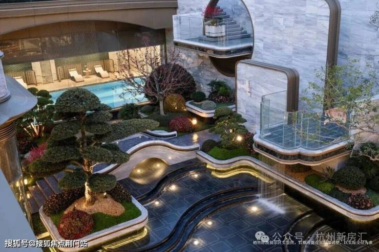 项目景观设计则是由国内顶尖团队GTS蓝颂宋淑华打造,“现代宋韵山水孤本”,建造下沉式庭院、约1500㎡会所,配置健身房、恒温泳池、私宴厅、行政酒廊、儿童游玩区、棋牌室等功能空间。