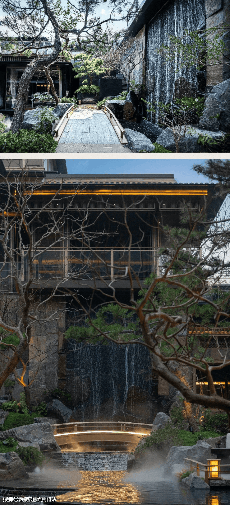 漫步于光影交织的幽静庭院,您将踏入一方充满诗意的天地。潺潺流水映照着婆娑树影,挺拔树姿为这片空间注入向上的生机,纵向延伸出无限的视觉张力。这座下沉庭院,不仅拉近了建筑与自然的情感共鸣,更使室内与景观紧密相连、和谐相融。每一扇窗户,都犹如框中的一幅生动山水画。