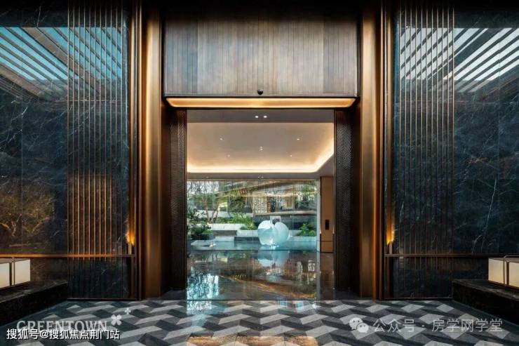 约2.4米“流光礼宾” 塔冠如悬浮的美学灯塔,与金色挑檐相映成辉。全封闭式阳台勾勒建筑轮廓,让立面如镜幕般收纳约30公里江岸鎏光。