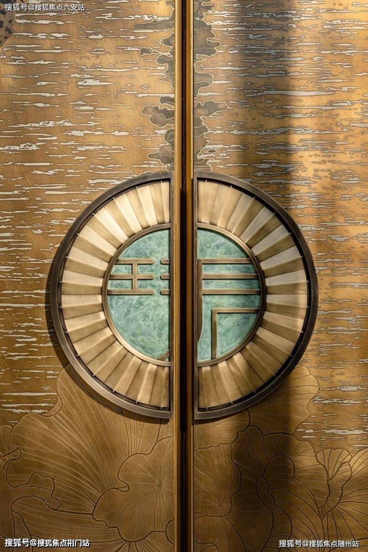 主入口采用约9.6米高黄铜大门(朱炳仁团队手工锻造),搭配11.5米酒店式落客门厅及百达翡绿奢石屏风,以“折扇”“钱塘潮纹”等元素诠释江南文化。