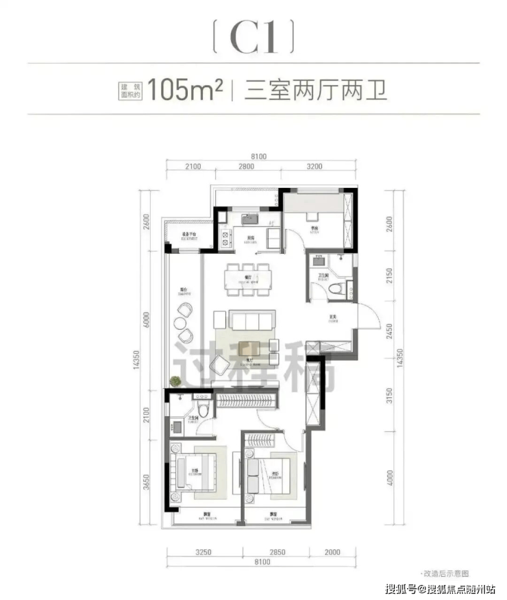 · 105方户型:在89方优秀基因上再度升级,格局更为阔绰。大套间外加6米长的阳台,28平米的大客厅,尽显阔气。