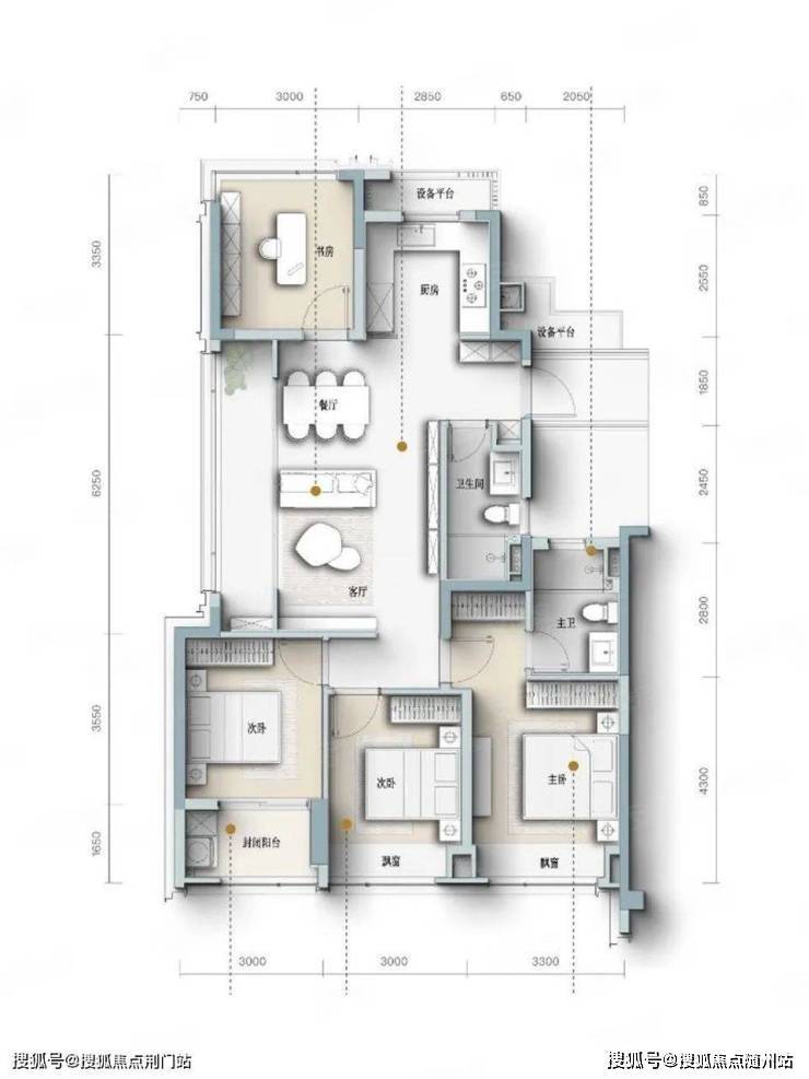 四开间朝南设计,主卧套房设计,宽景封闭式阳台。