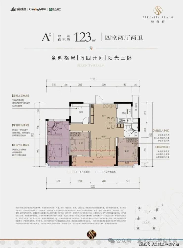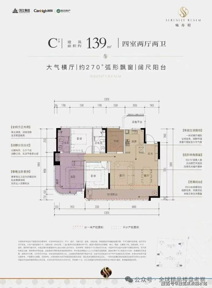 项目打造建面约123-173㎡的主力户型。该项目在户型打造上也有诸多突破,如建筑面积约139㎡户型采用约6.8米全景横厅,采光极佳;约21㎡主卧带步入式衣帽间,搭配270°转角飘窗,更奢华明亮;双洄游动线体系既保证隐私又创造多元互动场景。