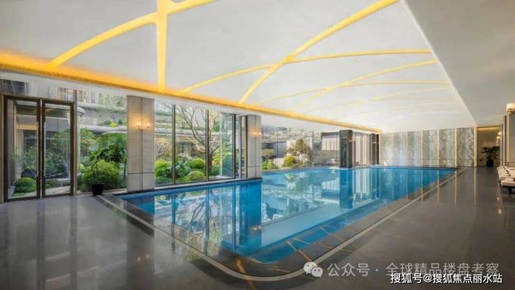 一个“浮岛”般的玻璃BOX轻盈置于景观之中,内含恒温泳池、健身房、网球室、party房等多功能社交空间,结合跌瀑水景,打造出静谧与动态交融的度假式体验。