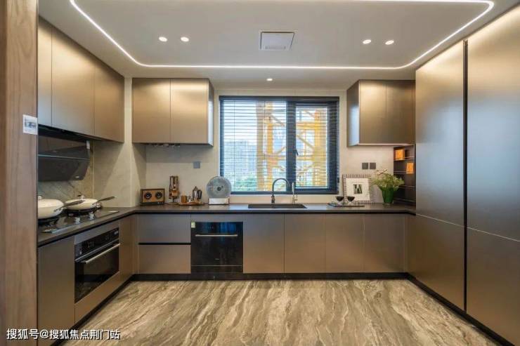 而且,厨房配置了奢华八件套:老板挥手感应智能油烟机、老板防干烧猛火灶、洗碗机、蒸烤一体机、贝克巴斯垃圾处理器、滨特尔净水器、欧普凉霸、厨房AI烹饪助理,这个家也太智能了吧。