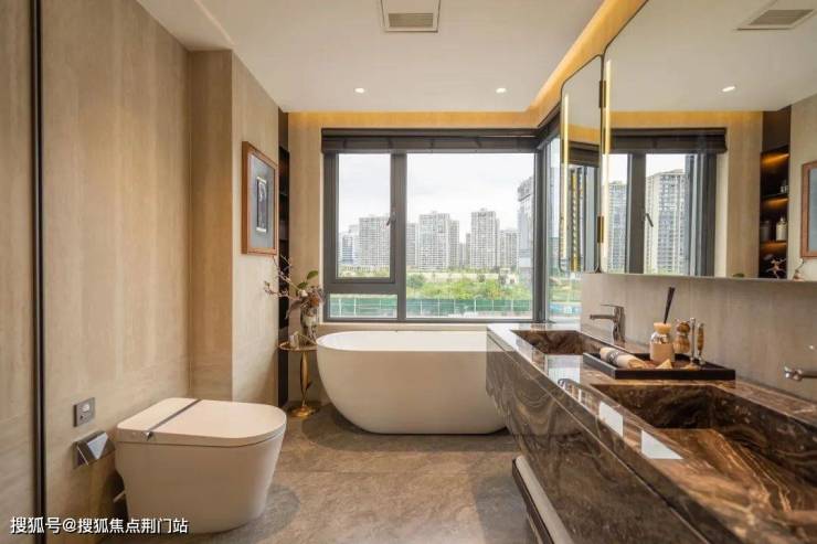 卫浴方面高配德国唯宝台盆、高仪水龙头、科勒恒温花洒(亲氧水流科技),以及智能马桶、智能浴缸(仅限约168㎡)等等。