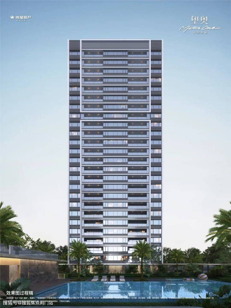 三面铝板立面,大面积玻璃运用,玻璃面连续长度最大约9米;住宅顶部“悬浮云端”格栅塔冠设计,闪耀建筑的第五立面。约40米酒店式大门:以香港扎哈The Henderson为灵感来源,采用648块三角形宝石切割面打造矩阵高奢吊顶,规划高约5.6米,宽约40米的酒店式大门