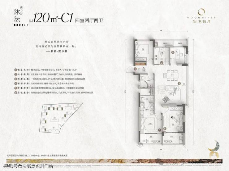 沐新月作为M55系第三个作品,以林汐美学为源点,承袭大水院美学、夜行者美学、疏密相间的漂浮美学等经典元素,更是因地制宜,打造无界自然的水岸森居,环绕建筑的都会森林、环绕园林的美学潮汐、环绕水景的漂浮岛屿的三重景观美学,理想生活如新月变幻,迭新不息。