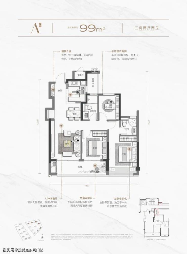 建面约129平方米四房两卫和99平方米三房两卫的户型,也都各有亮点。前者具有宽屏大横厅和约9.1米跑道阳台,后者也具有约6.35米的起步双联阳台,视野开阔。