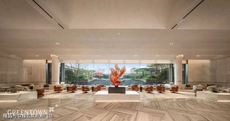 拾级而上,步步高升。进入地上会客厅大堂前场,“无界之镜”大落地玻璃「观景盒子」,令风光内外交融。