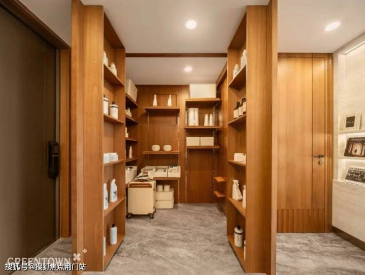 自地下车马院返家,踏入呈对称格局的光厅,其顶部“书简”造型的延展设计,以及随处可见的海棠元素,皆使人出入时步履沉稳,仪式感自然而生。