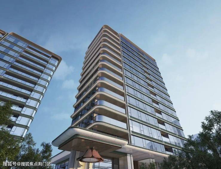 标志性的曲面屏设计通过取消转角结构柱,实现270°观景视野,达成视觉的无界延伸。大面积陶板材质的运用,以其比铝板更丰富的光影、比石材更灵动的质感,与香槟金线条共构出立面的温度与深度。