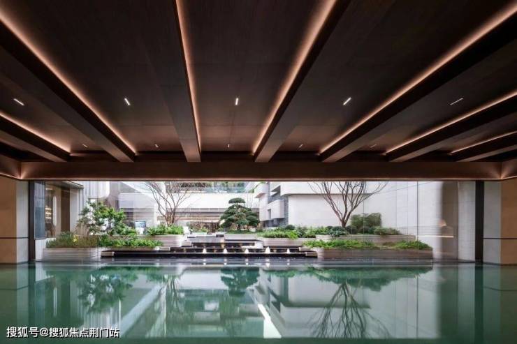 值得一提的是,有别于传统会所泳池无法与外界联通,翠隐江粼的恒温泳池沿着下沉式庭院这一侧打造巨型可移动式玻璃门。