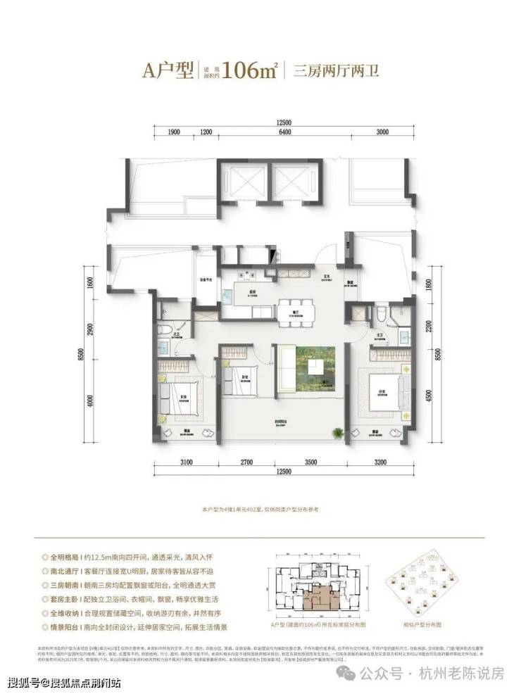 知海棠的户型大放异彩。首开时,当年轻人看到109㎡竟然做成了三房两厅两卫的观景边厅户型,106㎡户型四开间朝南,南向面宽达12.5米,128㎡则是4房大边厅,的确有种两眼放光的感觉。