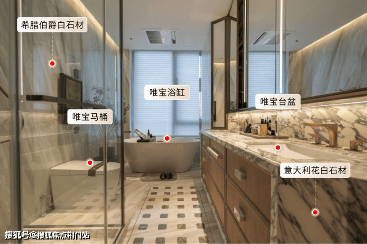 简单环视餐客厅、卫生间,不同石材点缀,不仅材质更耐用,也让空间更具视觉冲击力,整体优雅、品质感呼之欲出。