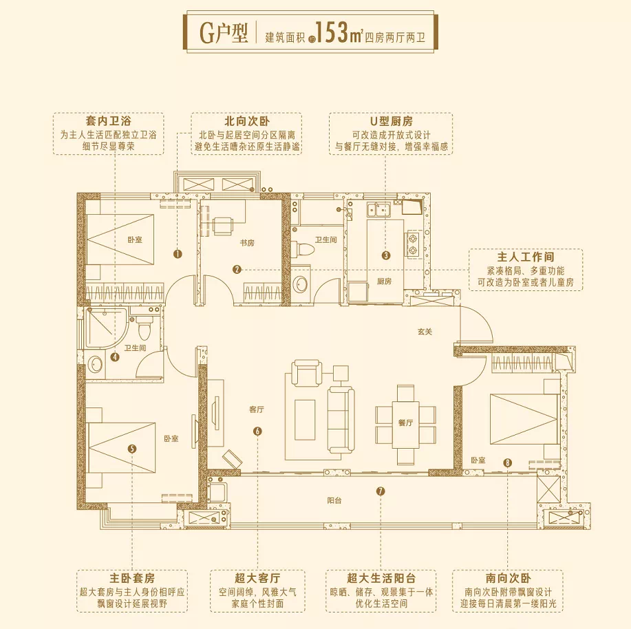 终以归家、风光设计、公共空间、室内空间、收纳、健康、景观等十大人居品质的关键执行点设计而成的高端住宅产品系