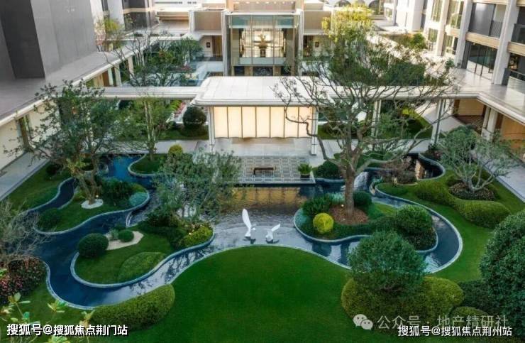 滨江经典的热带园林景观,种满了高大的热带树种;除了下沉式庭院中的水景外,园区中央还有一座异形景观水池。