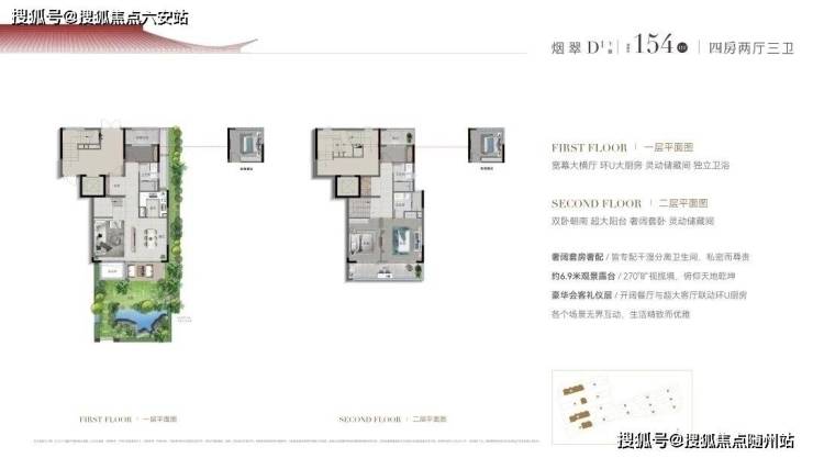 约154㎡下叠户型在有限面积内规划南向横厅、四房五卫及南向双开间大阳台,空间利用率直逼同类180㎡产品。约177㎡上叠户型每层配置南北双露台,顶层私享近100㎡星空露台,形成三重露台格局。
