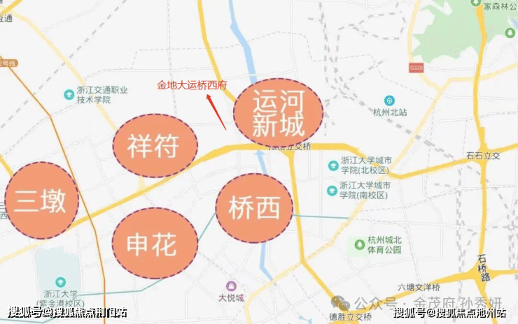 项目位于拱墅区祥园路与筑研路交汇处,其所在的运河湾板块堪称城北"黄金十字":南接留石高架快速路,东临千年京杭大运河景观带,约2公里范围内更是辐射桥西与申花两大豪宅圈。