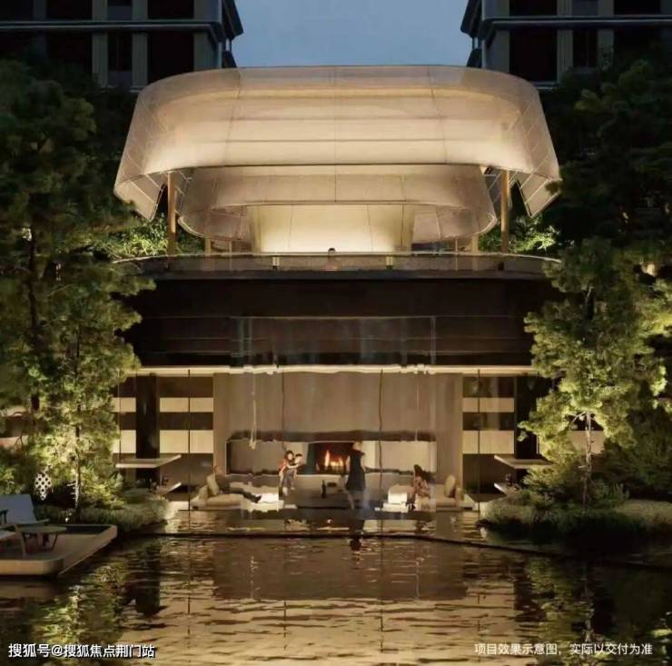 它还不仅仅是大门,楼上就是业主客厅,一面朝着城市街道,一面朝着庭院景观——大面的溪流水系、瀑布,还有一个个廊下卡座,就铺展在眼前。