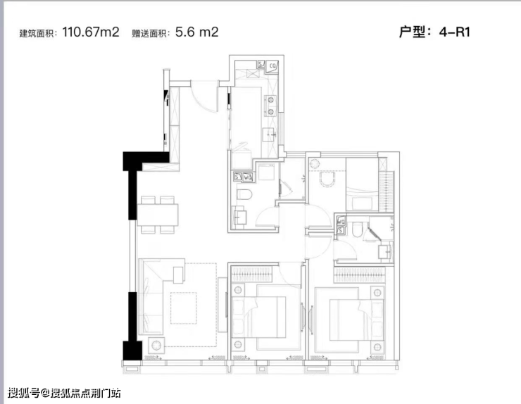 以建面约110㎡平层(R1户型)为例,约9.7米大面宽,在一层内解决所有功能空间的延展和便捷性,带来奢阔舒适的体验。